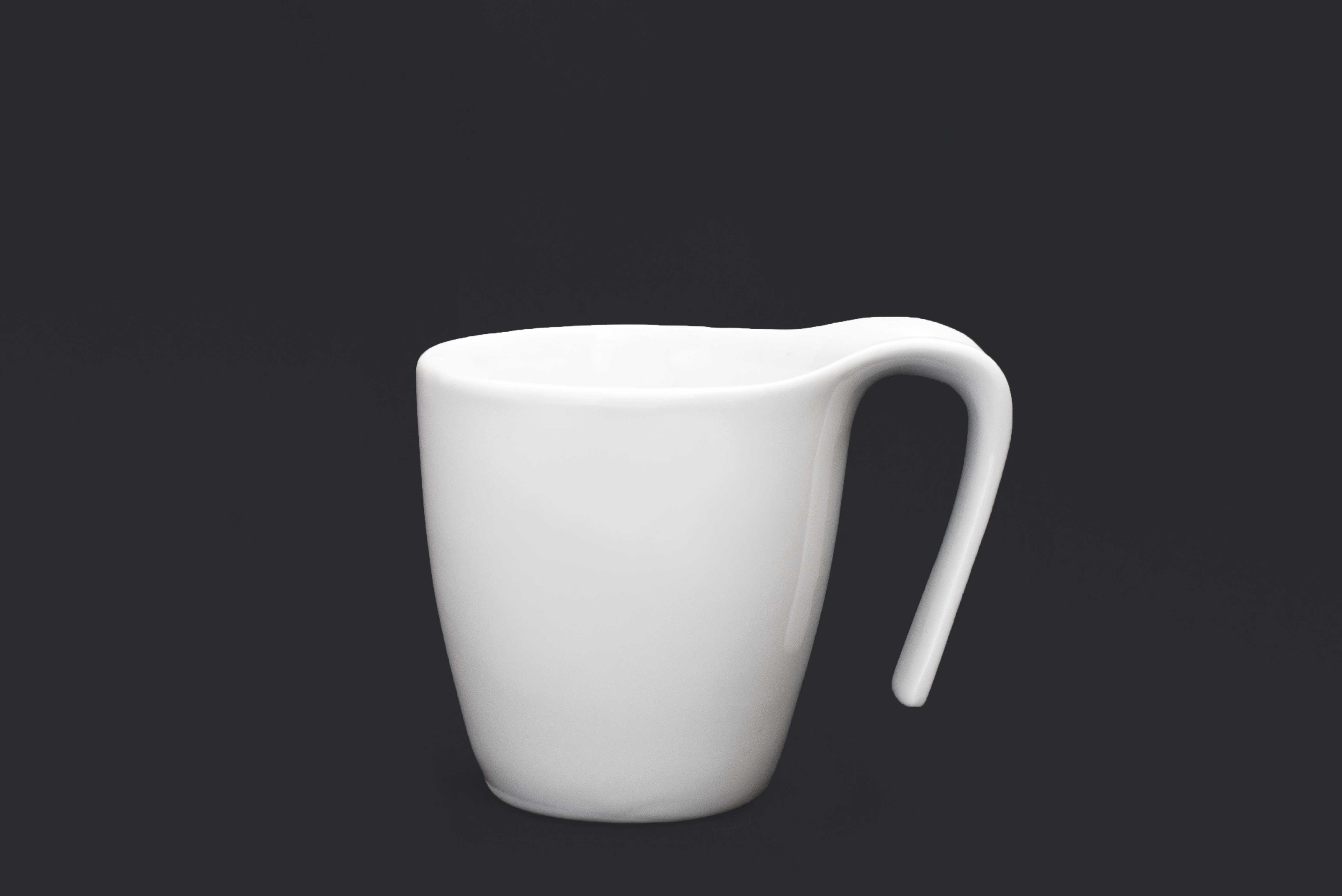Hrnek z kvalitního porcelánu netradičního designového tvaru. Vhodný k reklamním účelům jako dárkový předmět, firemní designové nádobí atd.