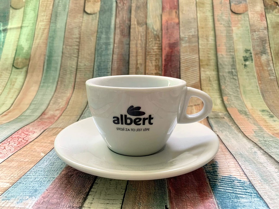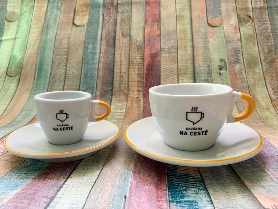 Porcelánový espresso šálek s podšálkem řady VIOLA (5 modelů: espresso, lungo, cappuccino, latte, čajový hrnek). Šálky s podšálky VIOLA lze doplnit konvicemi a mlékovkami z řady ROSA.