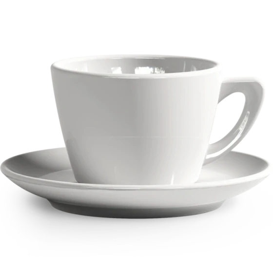 Porcelánový italský šálek s podšálkem řady ANEMONE (4 modely: espresso, cappuccino, latte, jumbo) v moderním minimalistickém tvaru.
