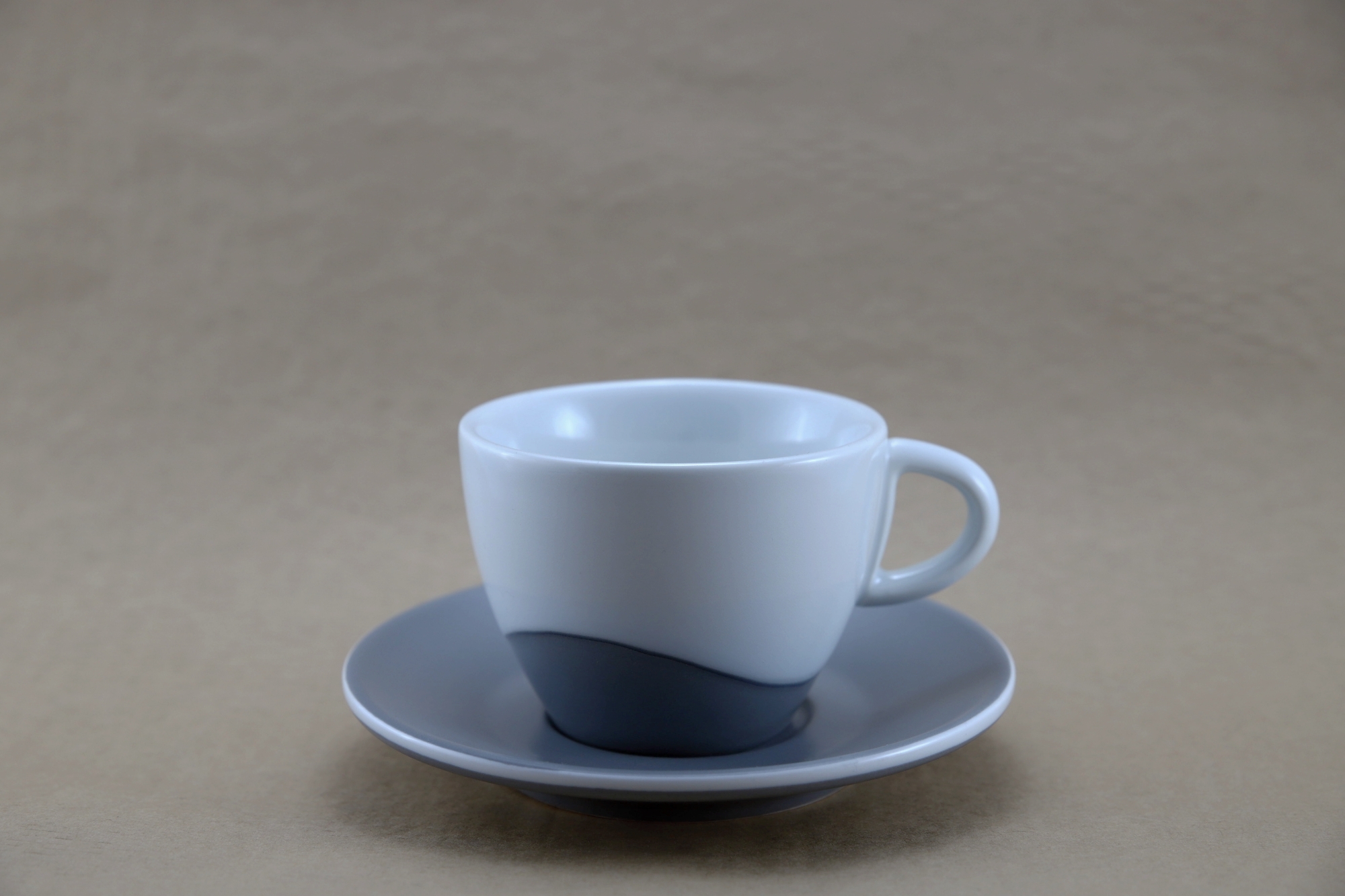 Porcelánový šálek s podšálkem řady VIOLA s elegantní, barevnou vlnkou (matná barevná glazura).